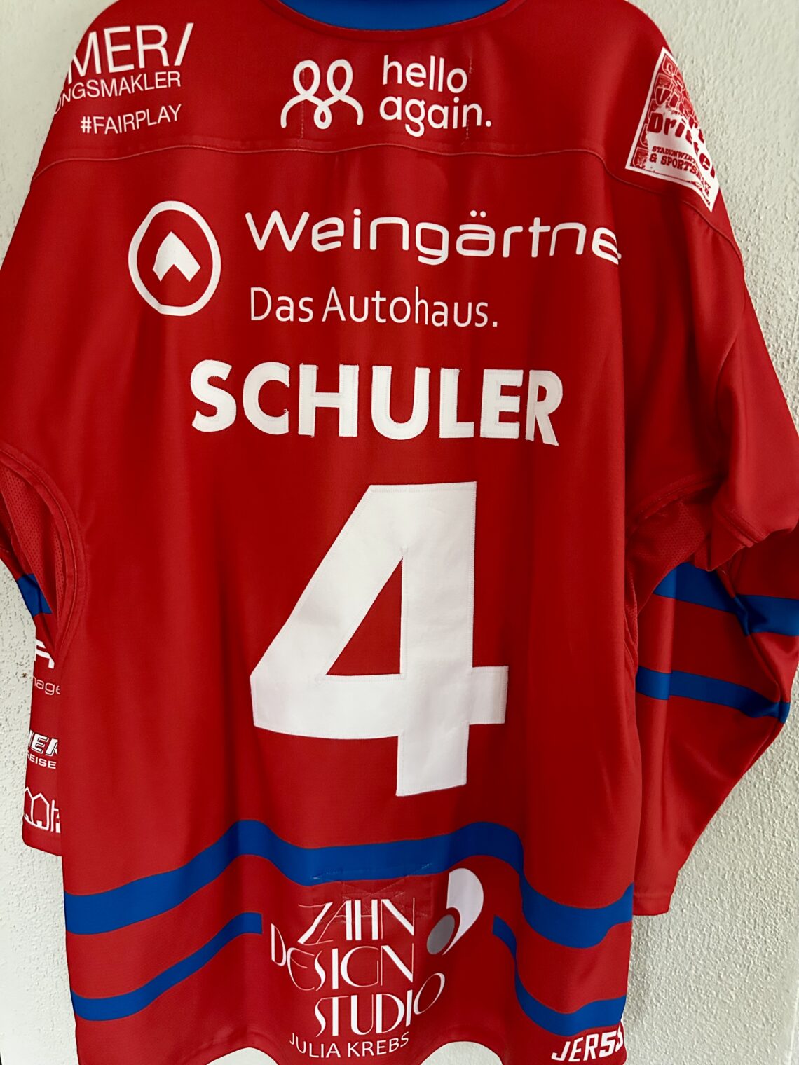 ECT: Original Spieler-Trikot Tölzer Löwen – 60 Jahre deutscher Meister – Home. #4, Xaver Schuler, Größe L.