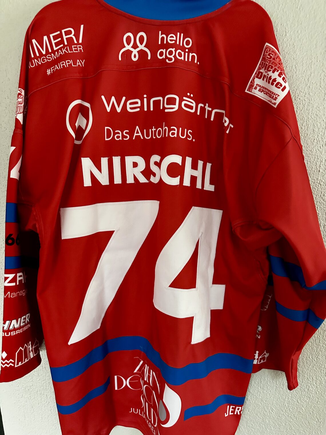 ECT: Original Spieler-Trikot Tölzer Löwen – 60 Jahre deutscher Meister – Home. #74, Ludwig Nirschl, Größe L.