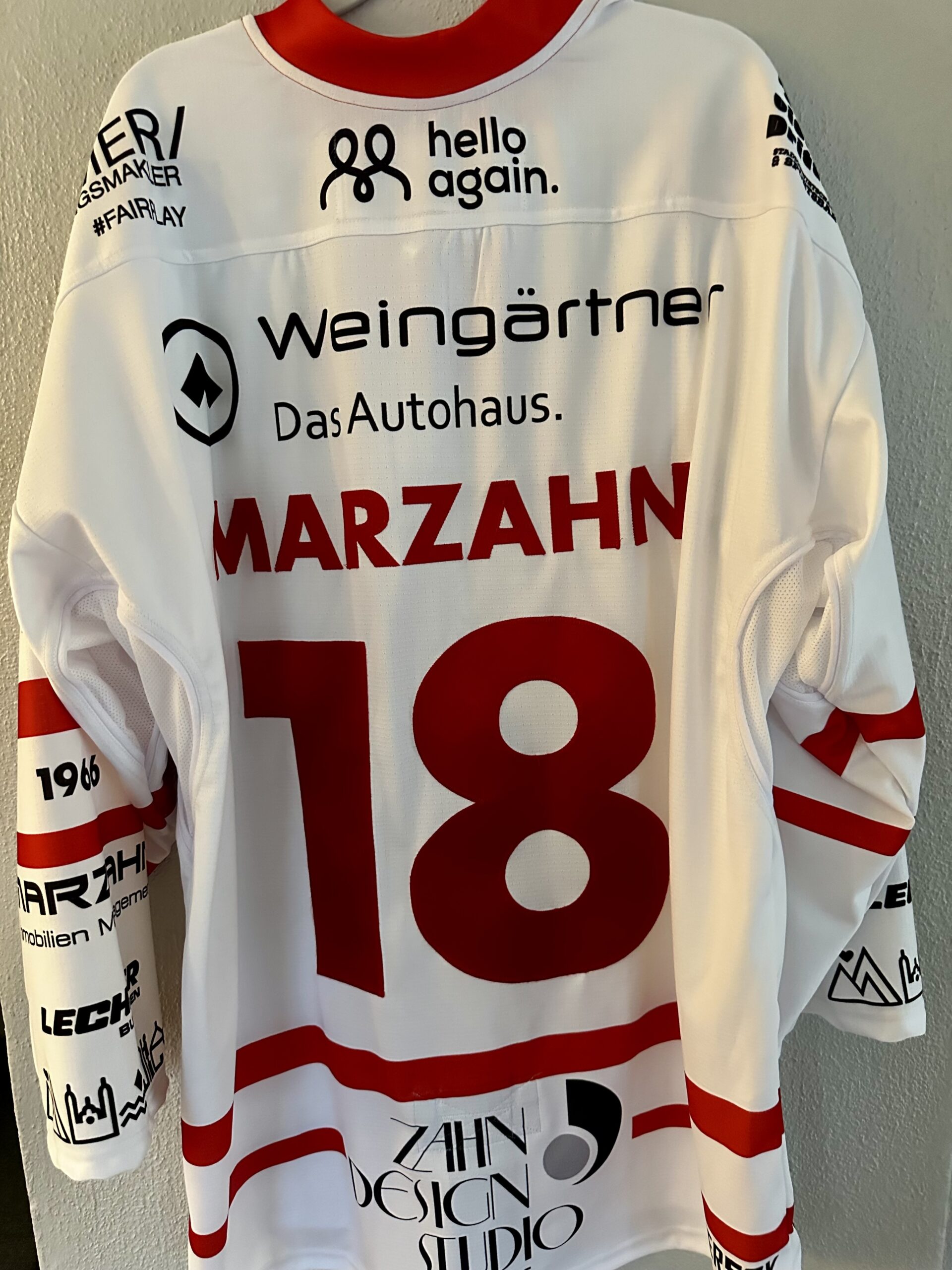 ECT: Original Spieler-Trikot Tölzer Löwen – 60 Jahre deutscher Meister – Away. #18, Jonas Marzahn, Größe XL.
